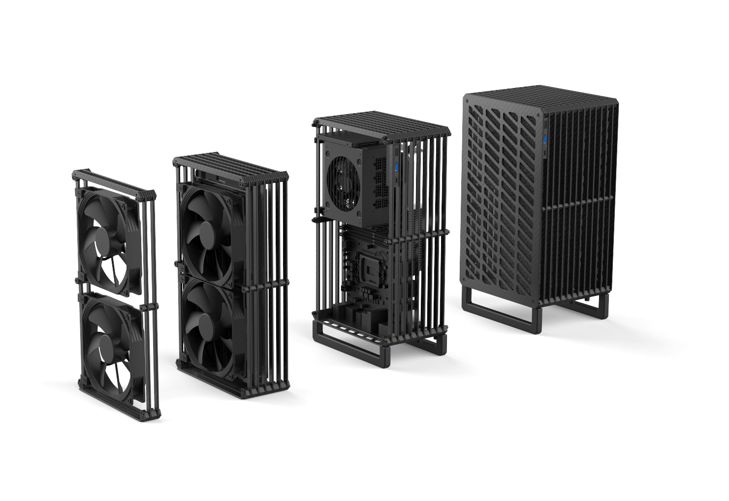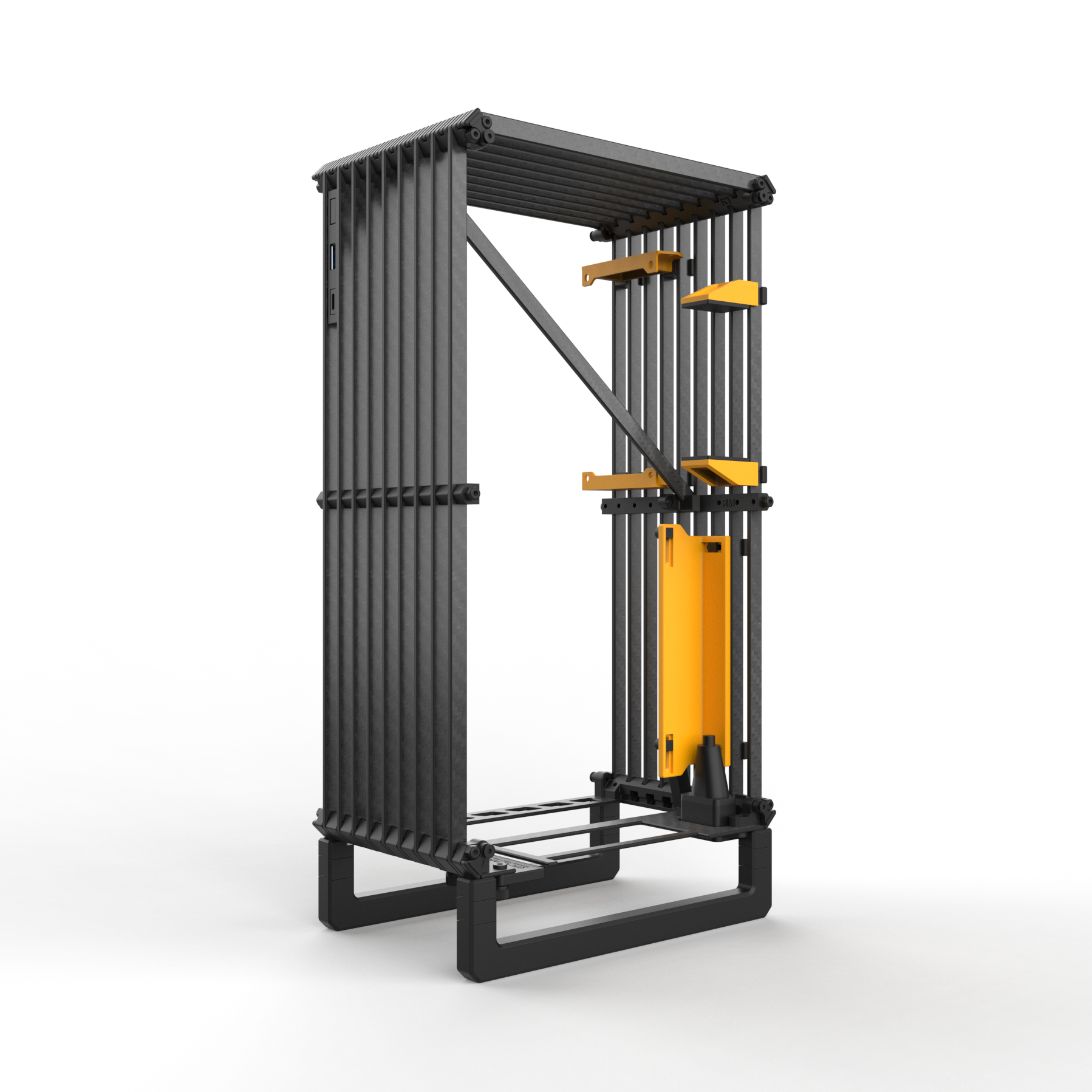 Tiger's uniform repeating rails not only look incredible, but are also give the Tiger unique abilities. All rails are adjustable mounting bars for components and they make up the almost the entire structure. Rails can be added to either side of the case to expand as as your hardware needs grow.